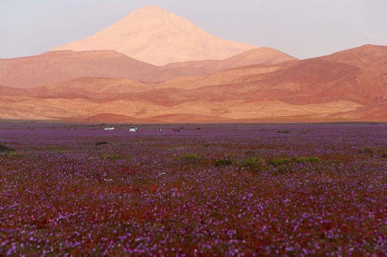 阿塔卡馬沙漠中有超過200多種花,大多數都是此地區特有的物種,不同的花會相繼綻放,并伴隨著昆蟲、鳥類與蜥蜴的繁殖。